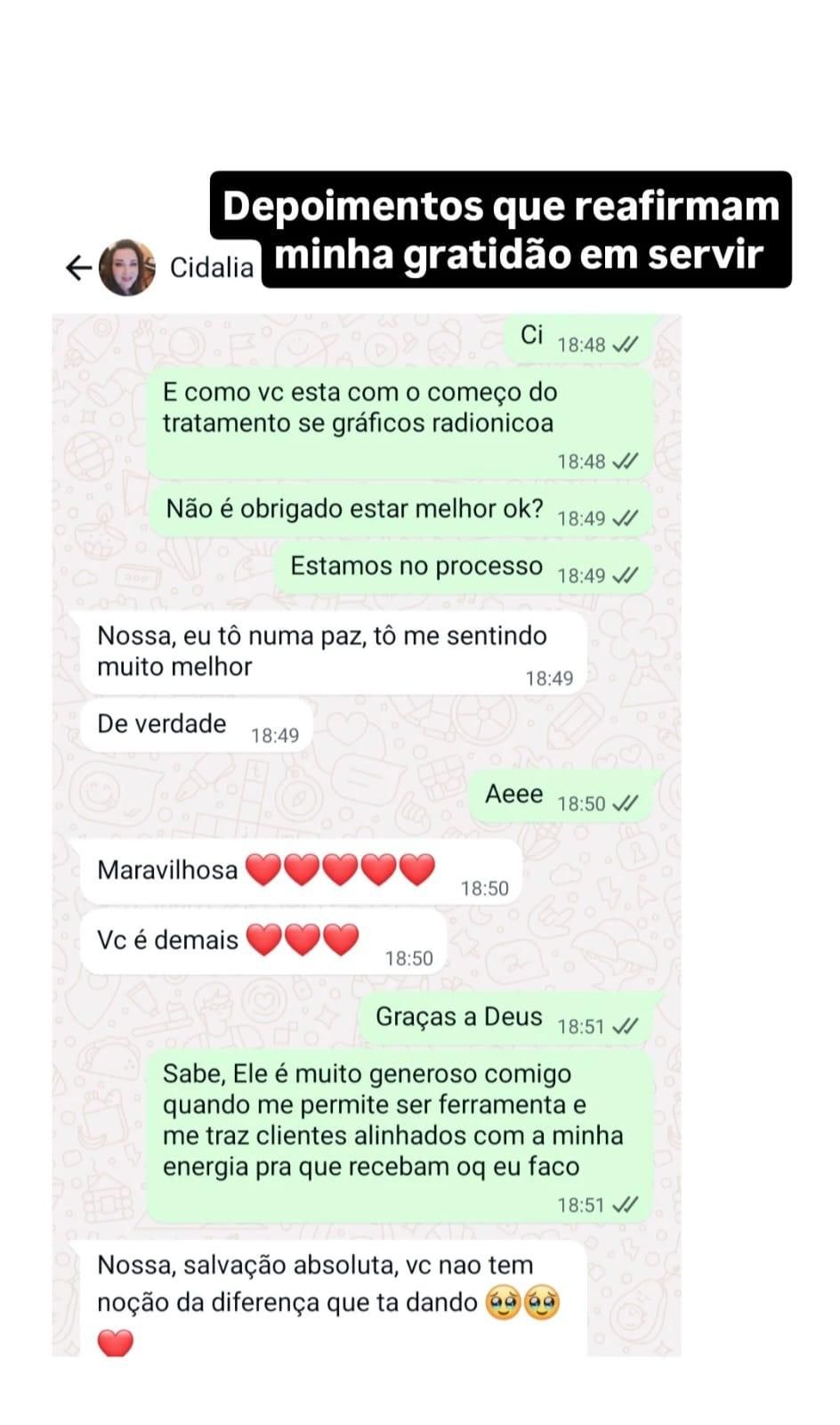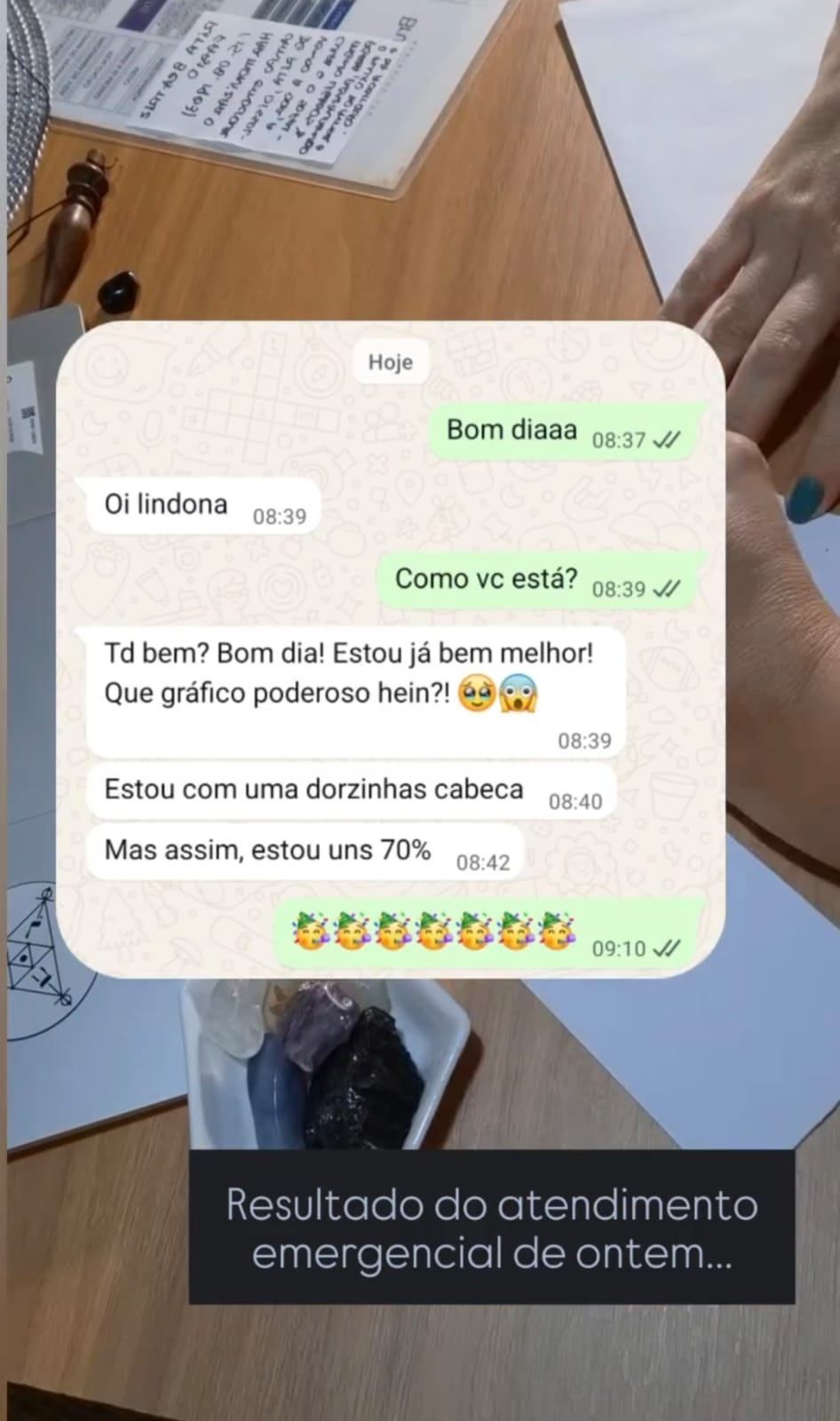 São atendimentos que tratam dores físicas, emocionais, bloqueios, traumas… Mas o que mais me encanta é quando uma mulher comum descobre que pode cuidar da própria energia e de outras pessoas com muita leveza, prática e autonomia.